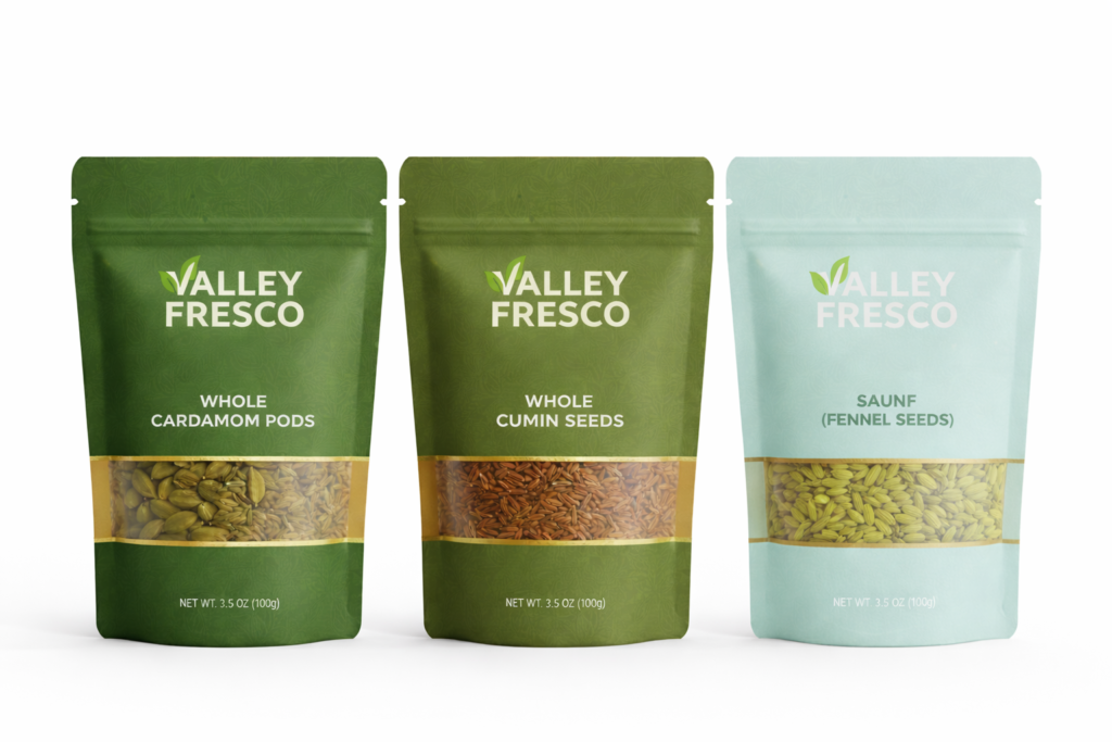 Valley Fresco brings you hand-selected Indian spices, carefully processed to lock in natural color, flavor, and aroma – rooted in tradition and crafted for modern kitchens. Every pinch carries rich aroma, natural purity, and the timeless taste of home-cooked health.